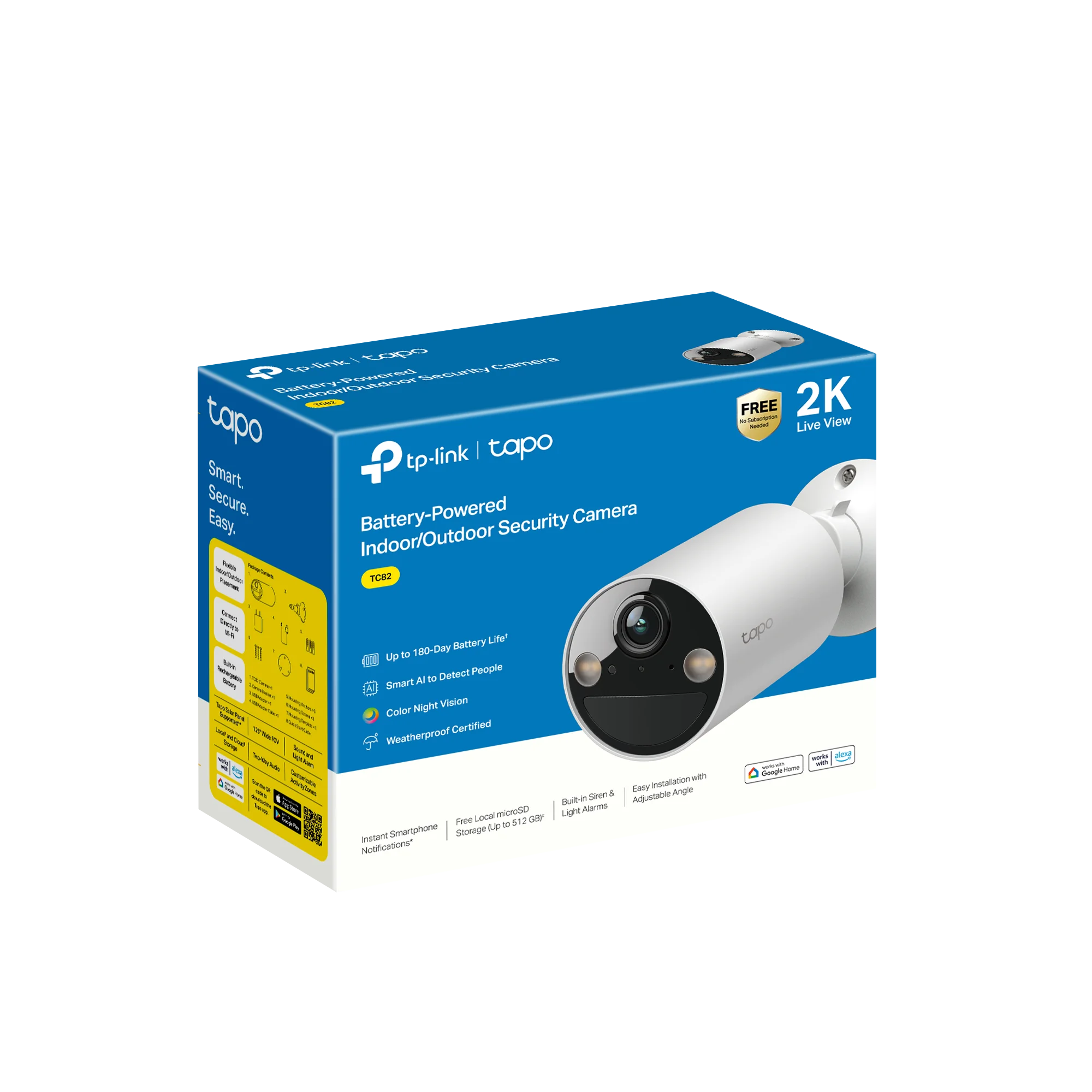 Product details Introducing the TC82, a smart, wire-free, indoor/outdoor, battery-powered security camera. With its versatile design, you can easily place it on a tabletop or mount it on a wall or ceiling. Experience day and light color live view along...