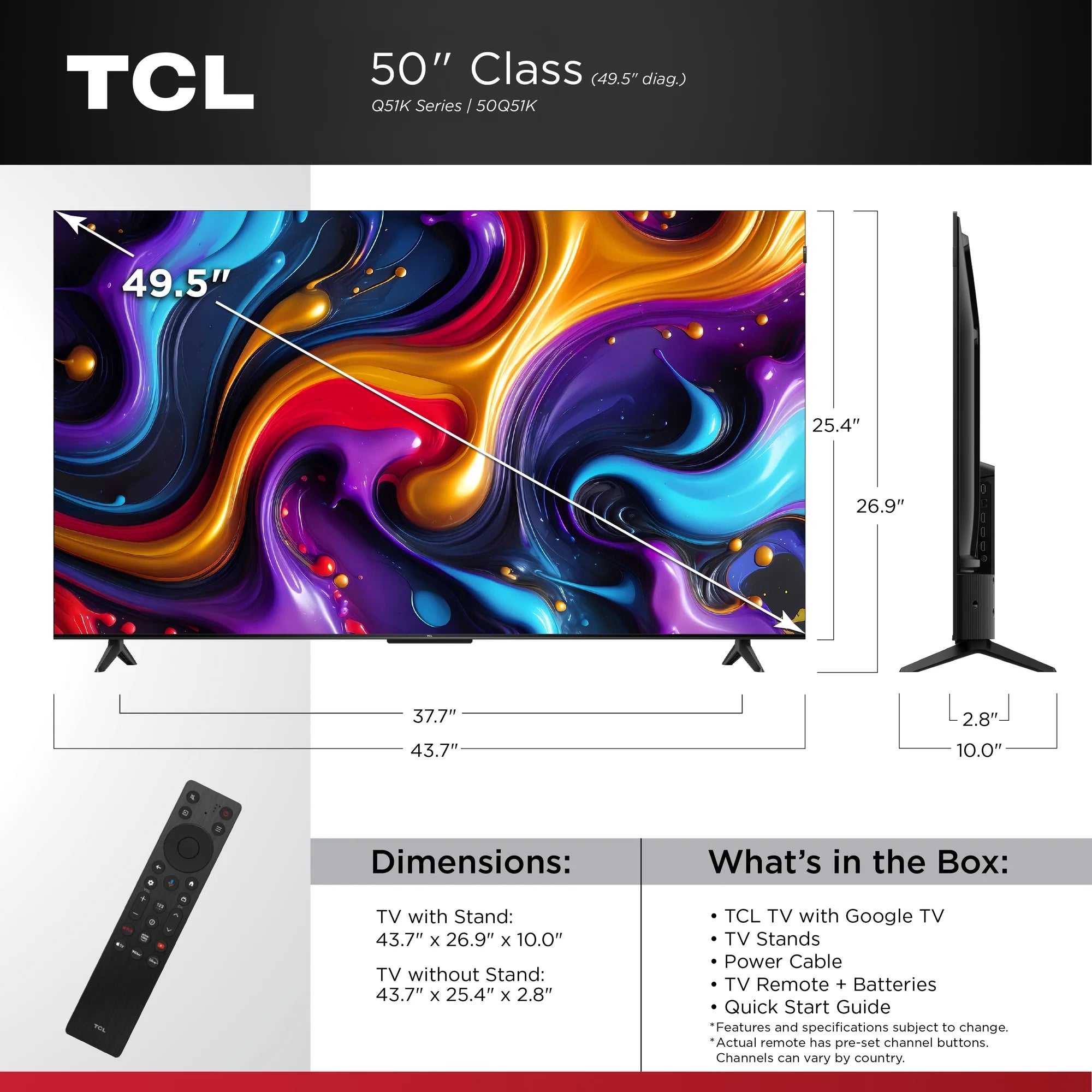 • Better Color. Better Picture. Better Value. Only with TCL - QLED delivers brighter visuals, richer color, and better contrast than traditional LED or standard UHD. With the TCL Q51K, you’re not just watching TV — you’re experiencing more life in every pixel. It’s the smarter upgrade for families, gamers, and everyday entertainment.